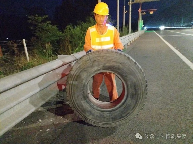 恒質(zhì)集團(tuán)青蘭養(yǎng)護(hù)團(tuán)隊高效處置遺落輪胎